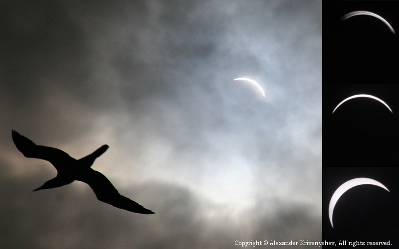 Поэтому могу с уверенностью сказать, что даже 98-99% частного затмения не представляет большого интереса, кроме наблюдения фаз затмения через фильтры и специальные очки.