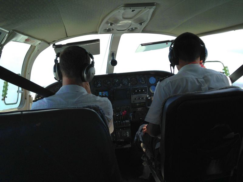 И правда, через 40 минут пришел еще один борт, в котором было 2 пассажира, плюс нас улетающих двое на 12 мест. Началась регистрация, в начале которой Роб сердечно поздоровался с “единым во всех лицах” работником аэропорта и попросил его быть с нами внимательным. И это было не лишним, так как на этот рейс лимит багажа был 15 кг на человека, что с нашим перегрузом вылетало в хорошую сумму.